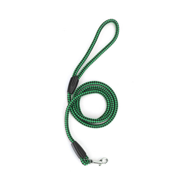 A 1.2 meter long dog leash made of nylon. It is suitable for small to medium dogs and comes in blue, red, and green. The leash features a metal hook and is soft, smooth, durable, and reusable. It is suitable for use with cats and dogs and comes packaged in an opp bag.