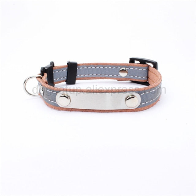 Engraved Cat Collar Reflective Kitten ID Tag Phone Number Nameplate Puppy Collar Charms Small Dog Leather Chain Pet ID Tag