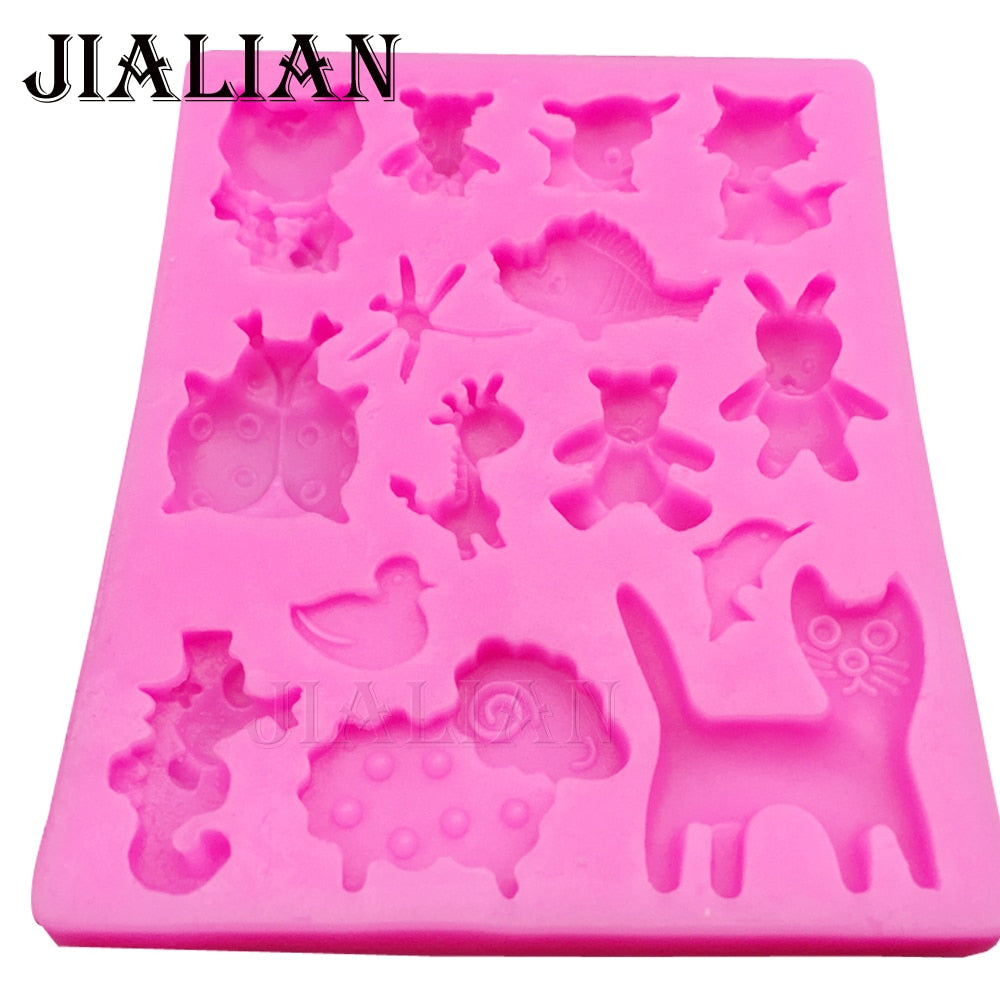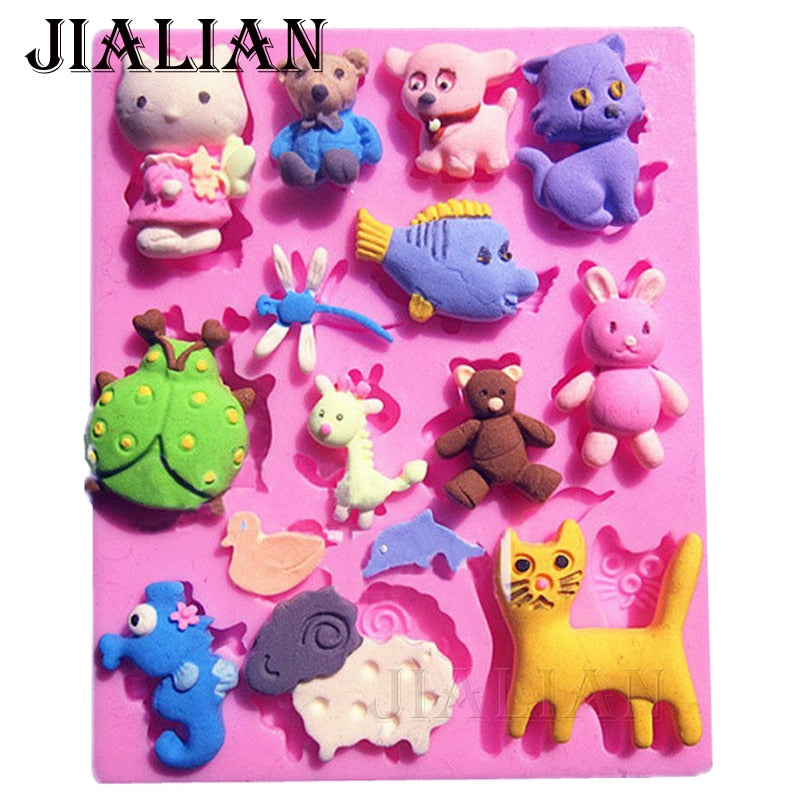 3D Animal dog cat bear rabbit giraffe dragonflie seahors sheep Duck dolphin cake decorating tools DIYfondant silicone mold T0192