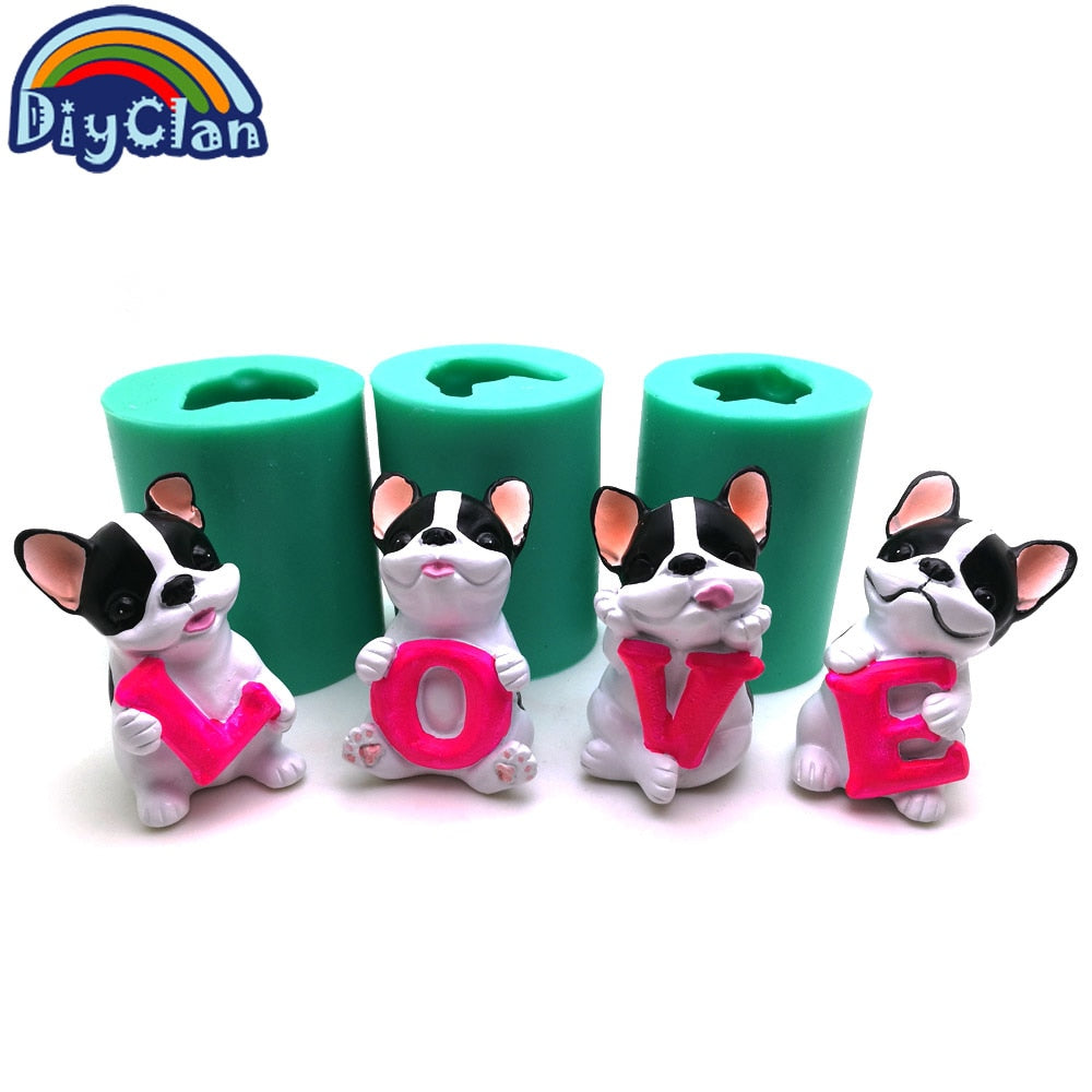 DIY LOVE Silicone Candle Mold For Cake Chocolate Decorations Mold 3D LOVE Dogs Handmade Soap Candle Making Mould
