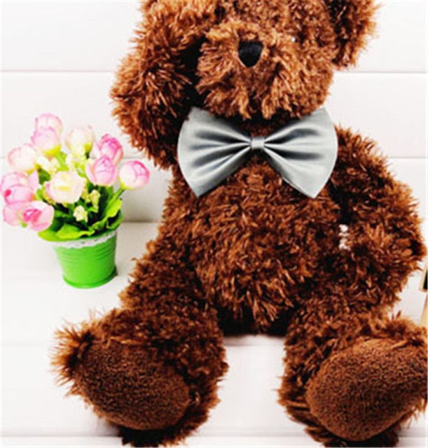 A bow tie for dogs and cats. It is adjustable and made of cloth, with a size of 40cm long and a bow size of 11cm x 7cm. It is sold as a single item and is suitable for pet grooming and styling.