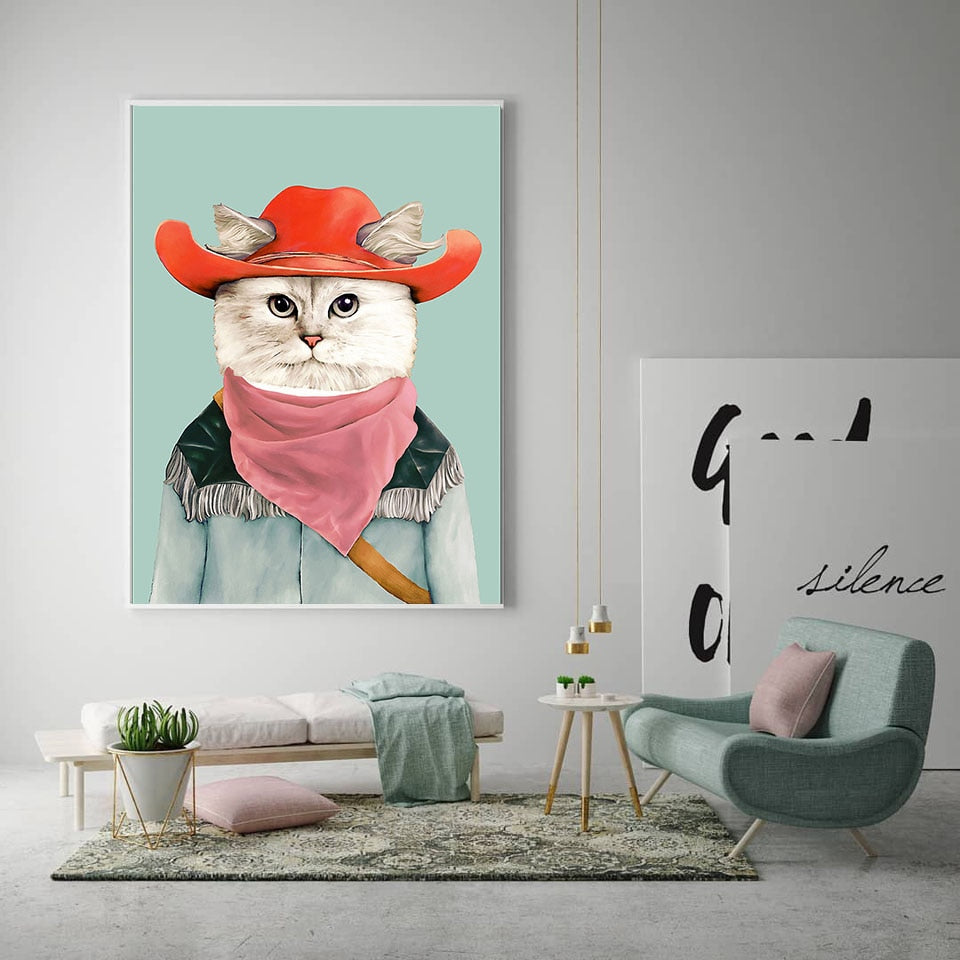 Cowboy Cat Abstract Art Poster Cartoon Dog Giraffe Deer Fox Canvas Painting Animal Picture Wall Art Paintings for Living Room