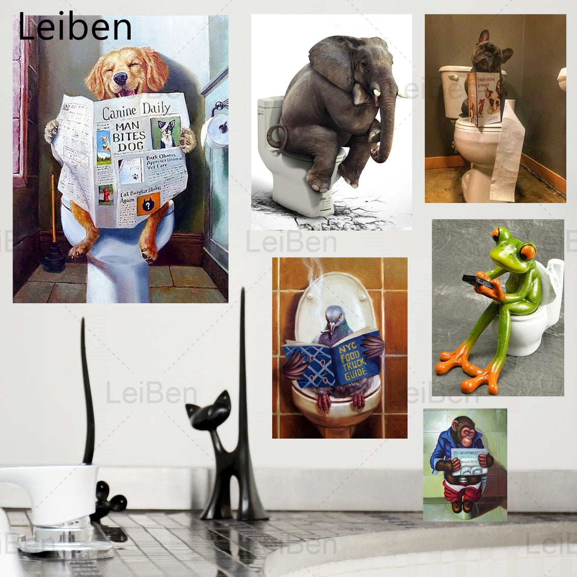 Nordic Abstract Creative Animal Poster Dog Elephant Frog Toilet Canvas Painting Funny Picture Home Decoration Toilet Bathroom