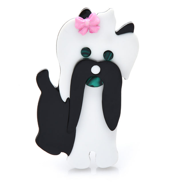 Introducing our adorable Baby Acrylic Schnauzer Dog Brooch Pin, available in two charming colors. This designer fashion jewelry pin is not only a stylish accessory but also makes for a cute animal badge gift. Crafted with care, this brooch is made of high-quality zinc alloy and acrylic material, ensuring durability and long-lasting shine.