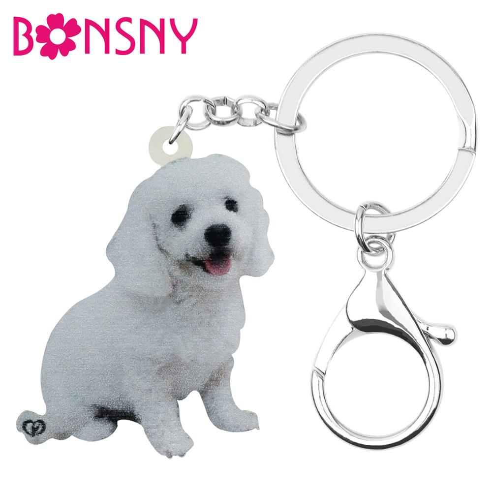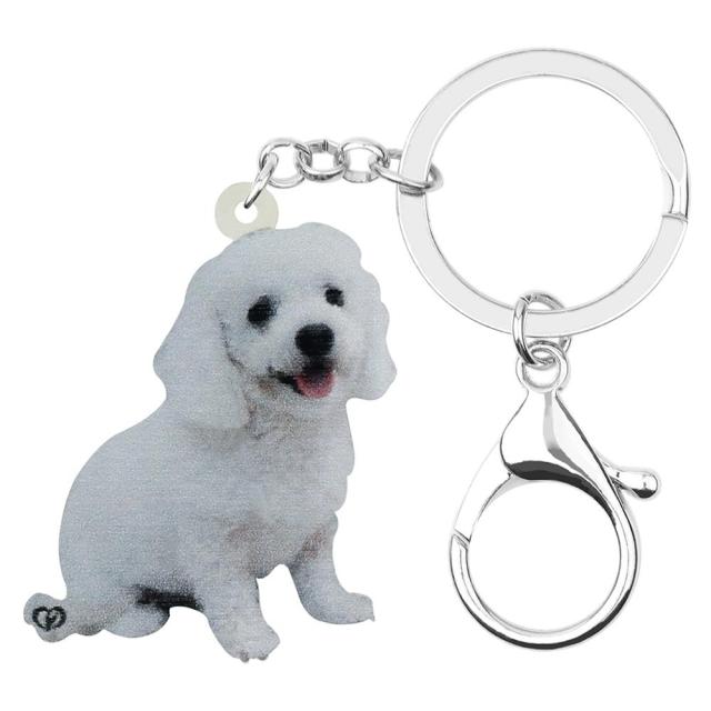 Acrylic White Bichon Frise Dog Keychains Lovely Pet Animal Key Ring Jewelry For Women Girls Teens Fashion Birthday Gift