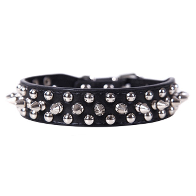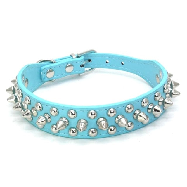 Designed with rivets and spikes, this collar is perfect for small dogs and cats who want to make a statement. The adjustable strap ensures a perfect fit for your pet's neck, providing both comfort and security. Whether you're taking your four-legged friend for a walk in the park or simply want to show off their unique style, this collar is a must-have.