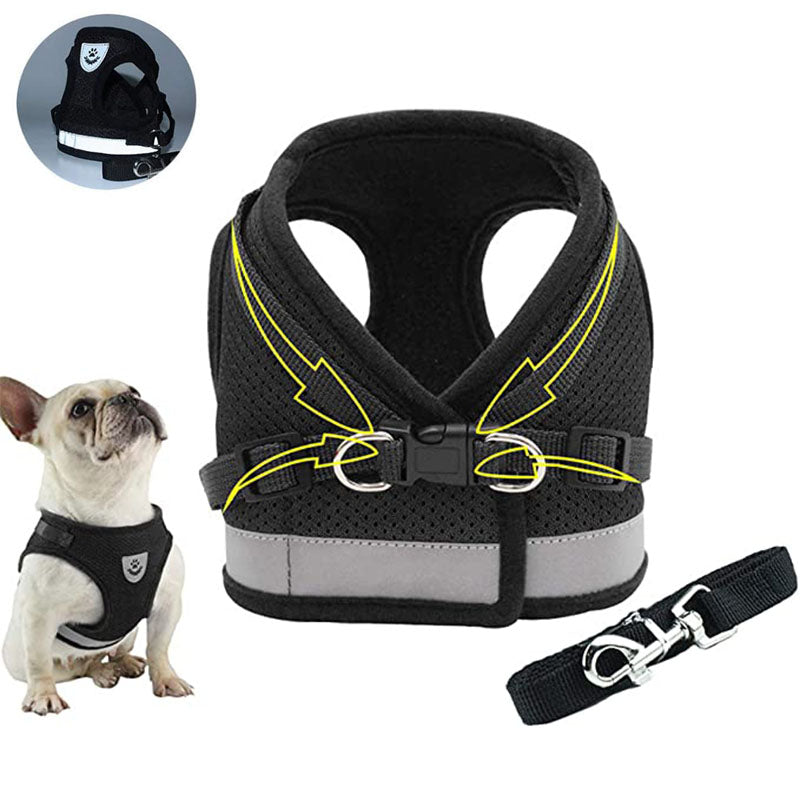 Adjustable Reflective Nylon Mesh Pet Dog Harness and Leash Collar Set for Small Medium Dogs Cat Chihuahua Pug Walking Lead Leash