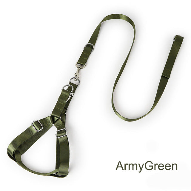 Our harness sets come in three stylish colors - black, brown, and army green - allowing you to choose the one that best matches your dog's personality. The vest-style design provides a secure fit, making it ideal for outdoor activities such as walking, hiking, or training sessions.