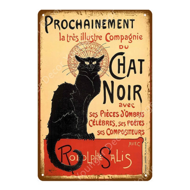 Add a touch of vintage charm to your home or bar decor with our Animal Pet Dog Black Cat Metal Poster Tin Signs Wall Plaque Kitchen Home Bar Pub Decor Wall Sticker Retro Vintage Plate!