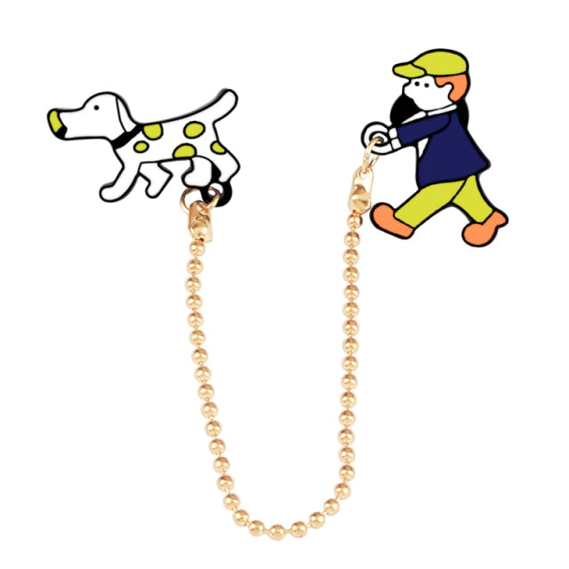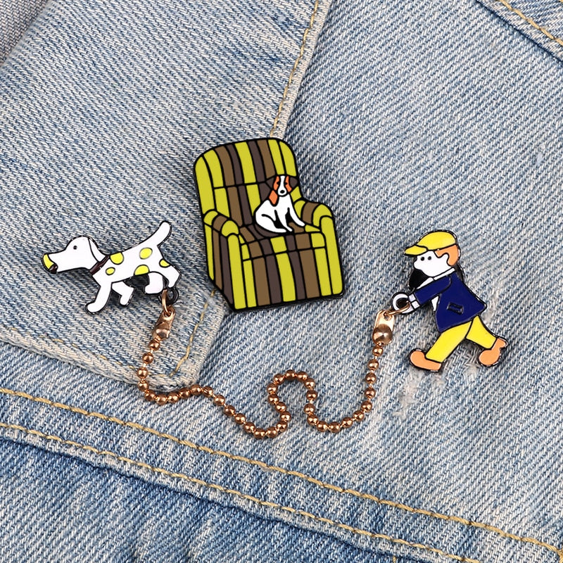 Animal Pet Dogs Brooches Lovely Cartoon Enamel Pins with Chain Funny Cute Badge Bag Clothes Lapel Pin Jewelry Gifts Kids Friends