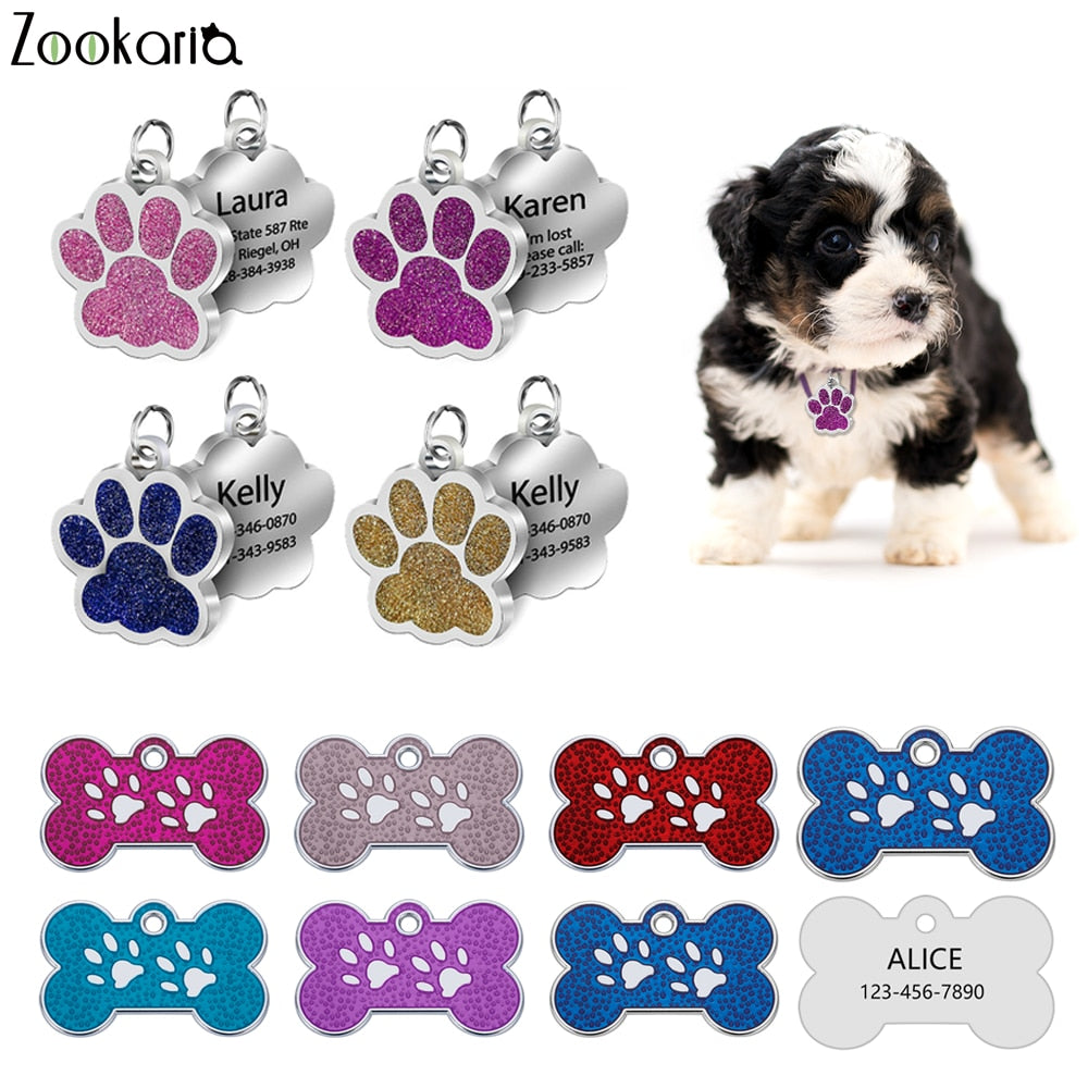 Anti-lost Custom Dog ID Tag Engraved Pet Dog Collar Accessories Personalized Cat Puppy ID Tag Stainless Steel Paw Name Cat Tags