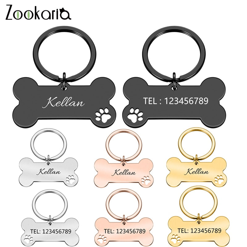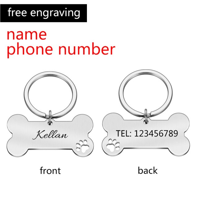This is a personalized pet ID tag for dogs and cats made of stainless steel. It is not a smart device but can serve as a call reminder. The tag is a trendy fashion jewelry pendant that comes in two sizes and weighs about 25g. It is suitable for all seasons and occasions as a pet accessory. The tag can be customized with engraved names and serves as a dog collar accessory or puppy collar ID tag. It supports dropshipping and wholesale.