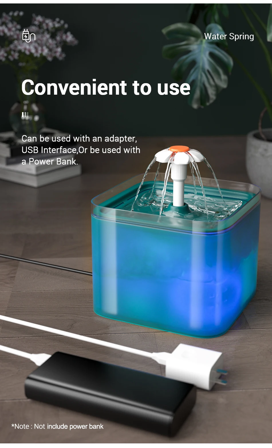 2. Advantages: silent, energy saving, prolong the service life of the filter element and the water pump, and can better attract pets to drink more water.
