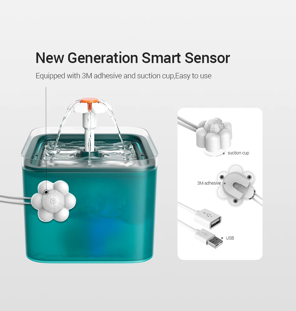 1. Automatically turn on the running water when the pet approaches, leave the sensing range 2-3 meters away, filter for 60 seconds, and then automatically stand by.
