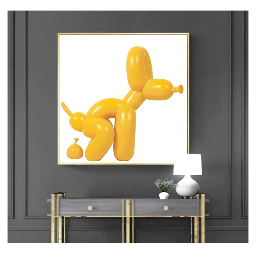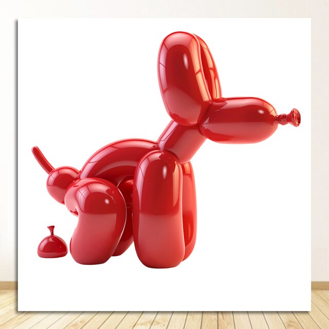 Enhance your bathroom decor with this stunning canvas print featuring a unique contemporary pop art design. This modern poster showcases a playful combination of a toilet sign and a balloon dog, creating a visually striking piece of art. Perfect for adding a touch of contemporary style to your home, this canvas print is an ideal choice for bathroom wall decor.