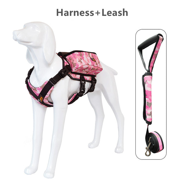 Big Dog Harness Tactical Dog Harness with Treat Bag Nylon Adjustable Pet Outdoor Training Travel for Medium Large Dog Supplies