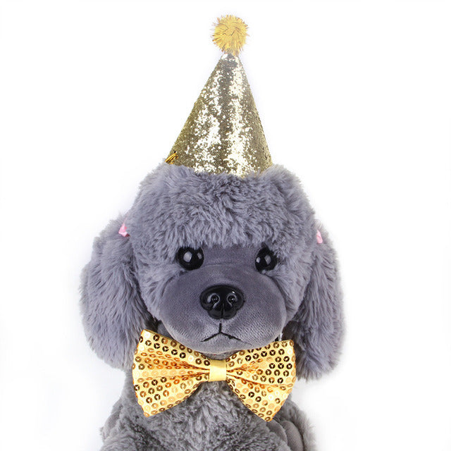 Birthday Hat Bow Tie For Small Cat Dog Teddy Gold Red Ties Pet Party Pet Accessories