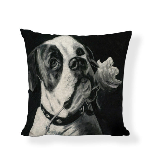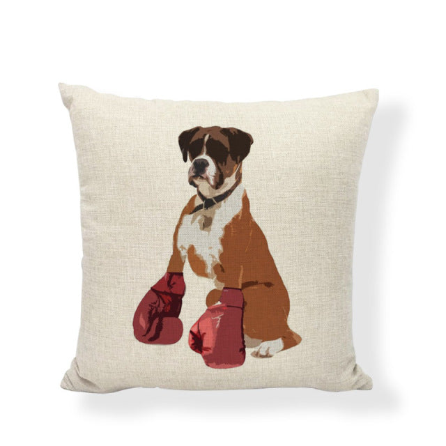 Cute Boxer Gaming Chair Cushion Cover Lovely Dogs Childlike Painted Home Decorative Holiday Gift Black Letters Throw Pillow Case