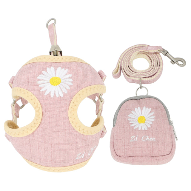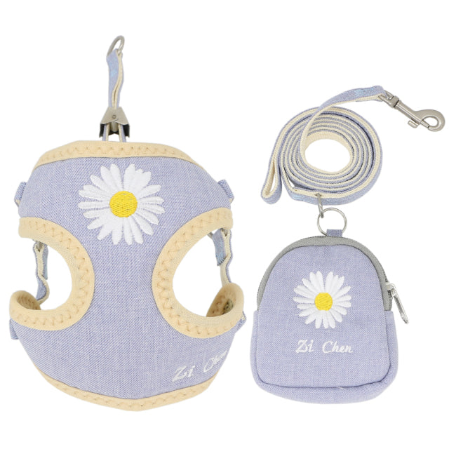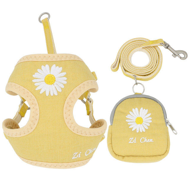 Dog Harness and Leash Set Embroidery Breathable Adjustable Snack Bag Pet Harness for Small Medium Dog Cats Vest Dog Supplies