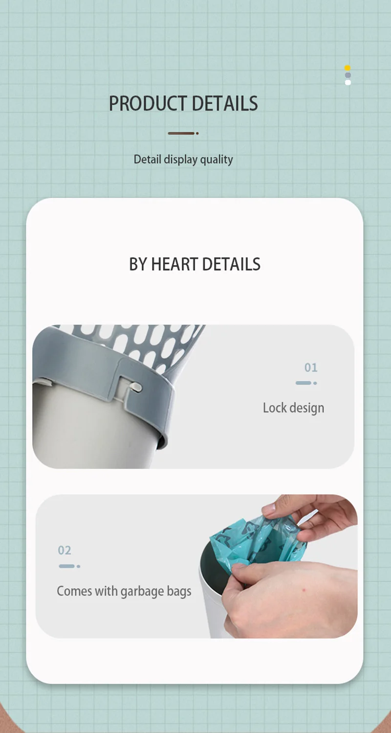 The Cat Litter Scooper Large Capacity with Built-in Bag Cat Shovel Pet Cleaning Poop Bag Kitten Cleaning Tool Pet Accessories is also environmentally friendly. By using the built-in bag, you are reducing your carbon footprint and helping to protect the environment.