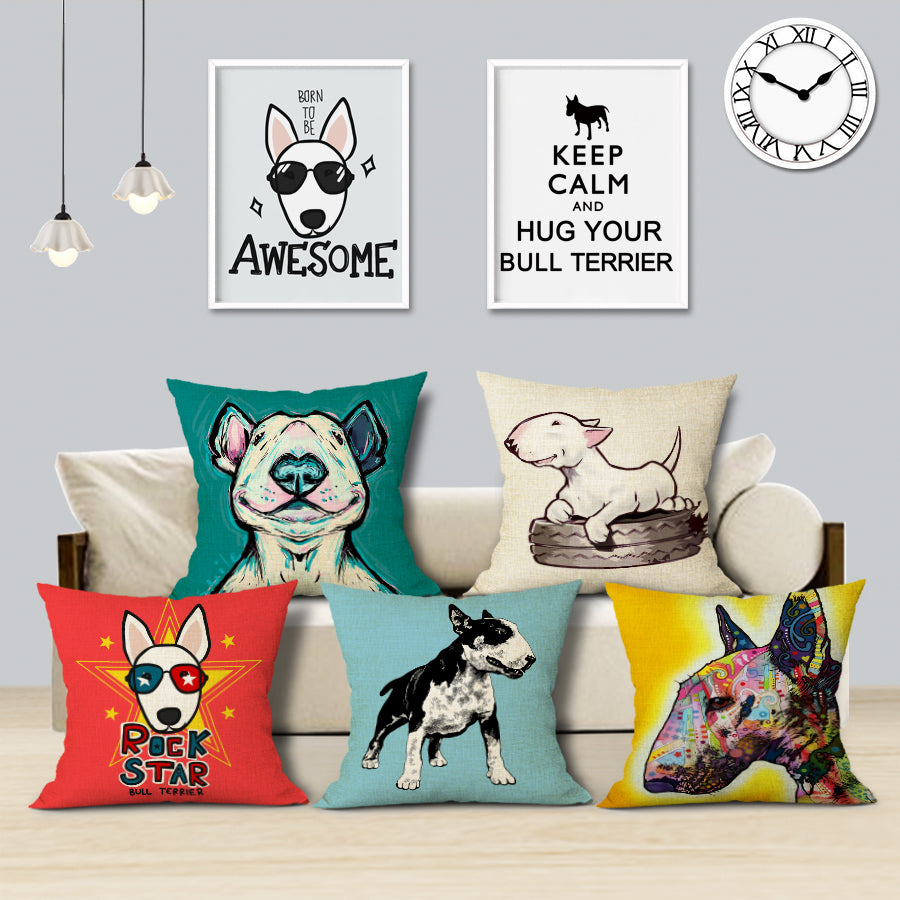 Bull Terrier Cushion Cover Cute Dog Printed Linen Pillows Cover Car Sofa Decorative Pillowcase Home Decor Case 45x45cm