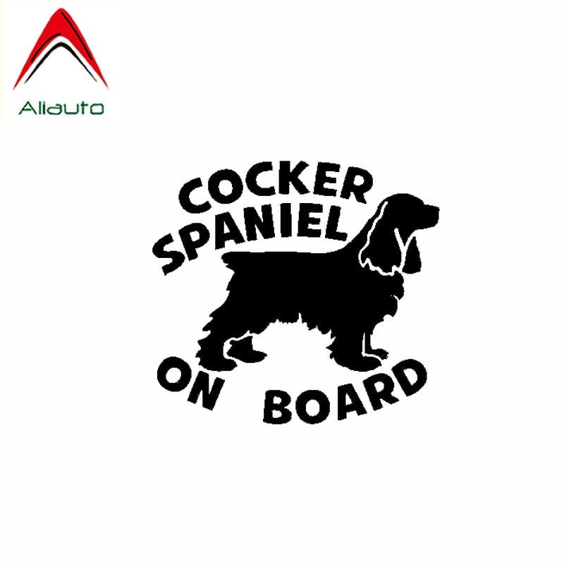 Cartoon Lovely Car Sticker Cocker Spaniel on Board Dog Vinyl Sunscreen Anti-UV Decals Decoration Black/Silver,15cm*13cm