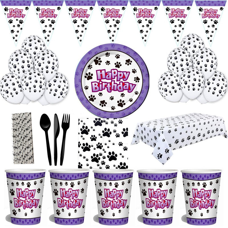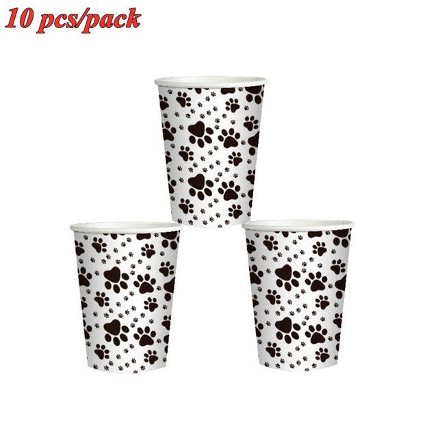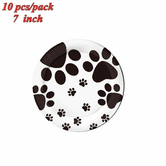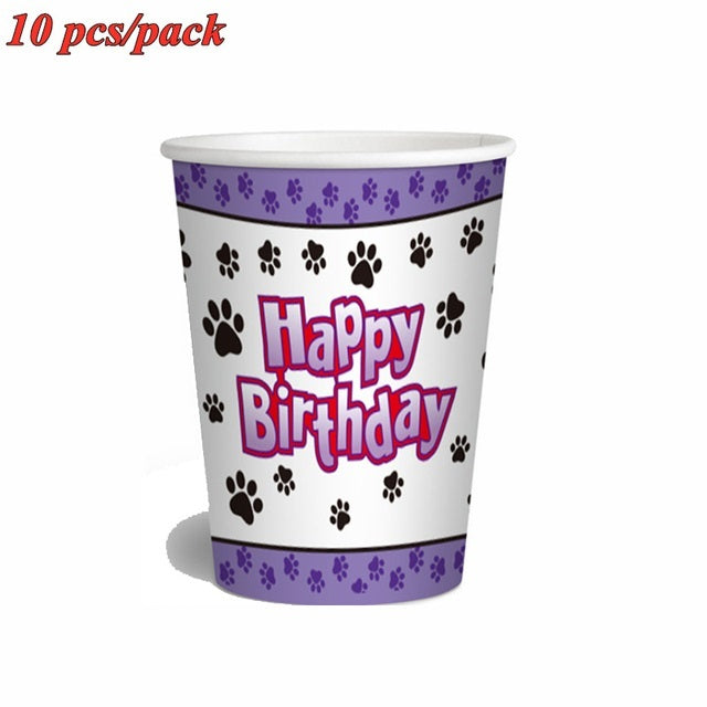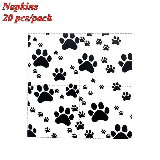 Cartoon Dog Paw Theme Disposable Tableware Cup Plate Napkin Kids Happy Birthday Baby Shower Supplies Pet Party Balloon Decor