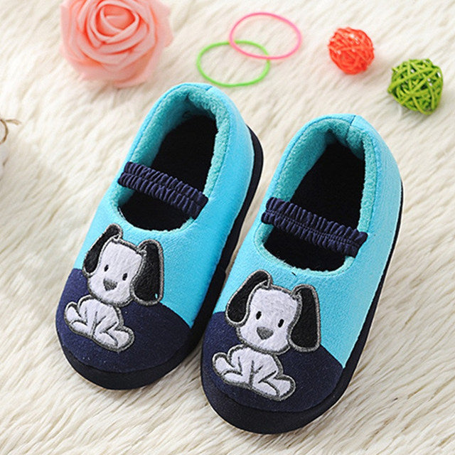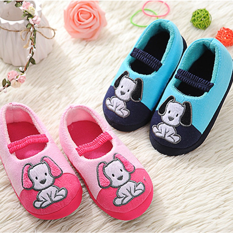 Introducing our Children Winter Warm Home Slippers, featuring a delightful Cartoon Lucky Dog design. These non-slip home shoes are perfect for boys and girls, aged 7-12 months to 7-12 years.