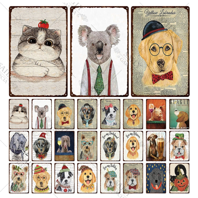 Cartoon Animals Sign Plaque Cat Dog Pet Metal Vintage Metal Plate For Wall Poster Bar Art Home Decor Cuadros