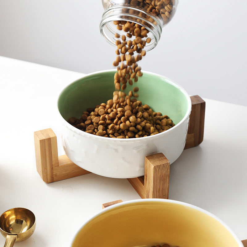 Introducing our high-quality ceramic cat bowl, designed to enhance your feline friend's dining experience. Crafted with care using durable ceramic and bamboo materials, this bowl offers a perfect combination of style and functionality. With a diameter of 15.2 cm, it provides ample space for your cat to comfortably enjoy their meals.