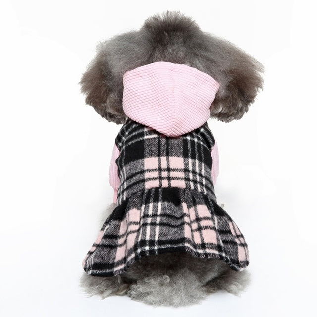 Not only is this dress fashionable, but it can also be considered a costume for your furry friend. Dressing up your dog has become a popular trend, and this plaid hoodie dress is a great choice for any occasion. Your dog will look adorable and unique, making everyone's heads turn.