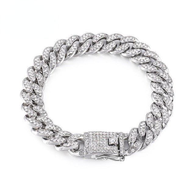 Pet Dog Cat Chain Collar Jewelry Metal Material with Diamond 12.5mm Width Collar Pitbull Personalised Dogs Collars Accessories