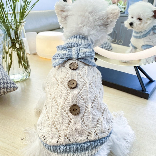Classic Dog Winter Sweater with Tie Thick Weaving Warm Pet Cat Clothing Lovely Princess New Year Coat Christmas Dog Clothes