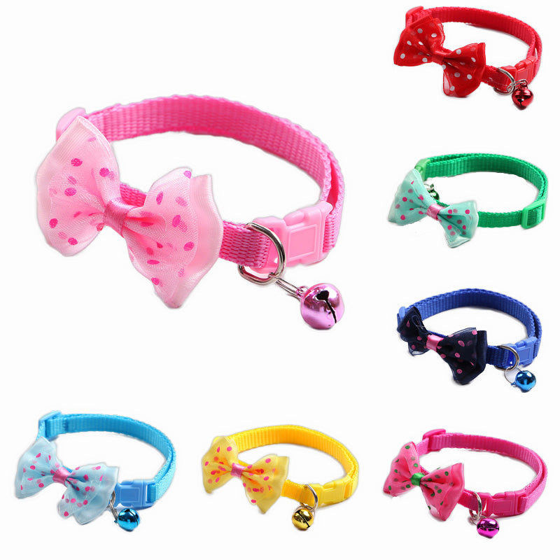 Colorful Cute Bowknot Bell Pet Collar Adjustable Buckle Cat Collar Pet Supplies Personalized Kitten Collar Small Dog Accessory