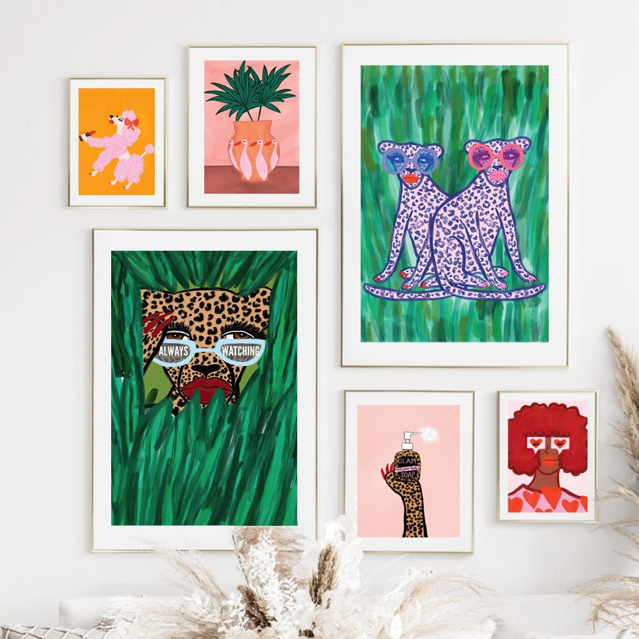 Overall, this Colorful Tropical Abstract Leopard Woman Dog Vase Wall Art Canvas Painting is a must-have for anyone looking to add a touch of color and creativity to their bedroom decor. With its waterproof and oil-proof properties, low price, and customizability, it offers both style and practicality. Order yours today and transform your space into a tropical oasis.