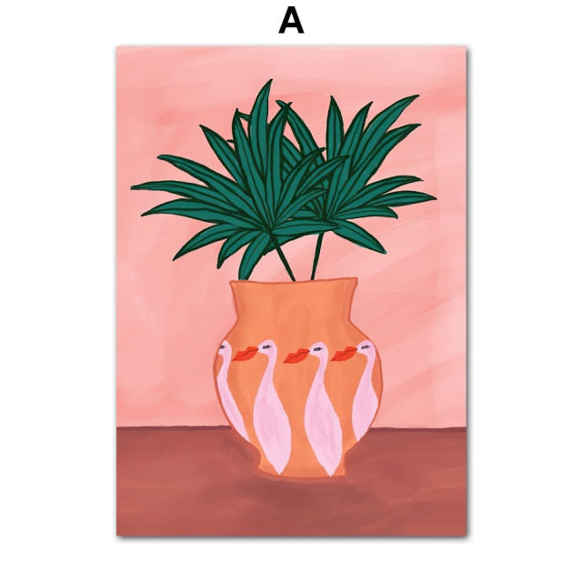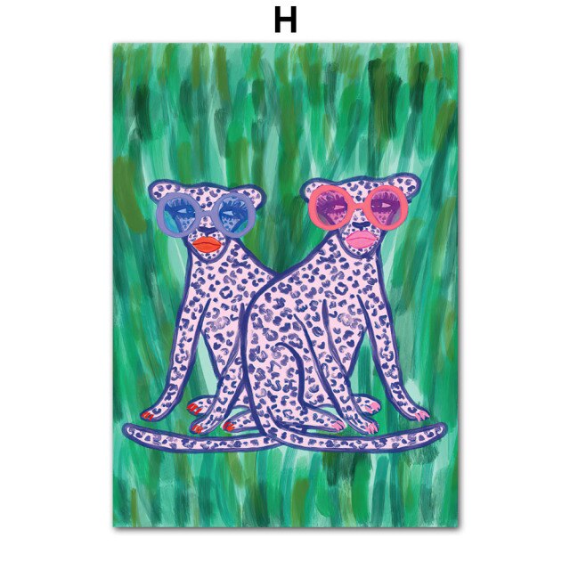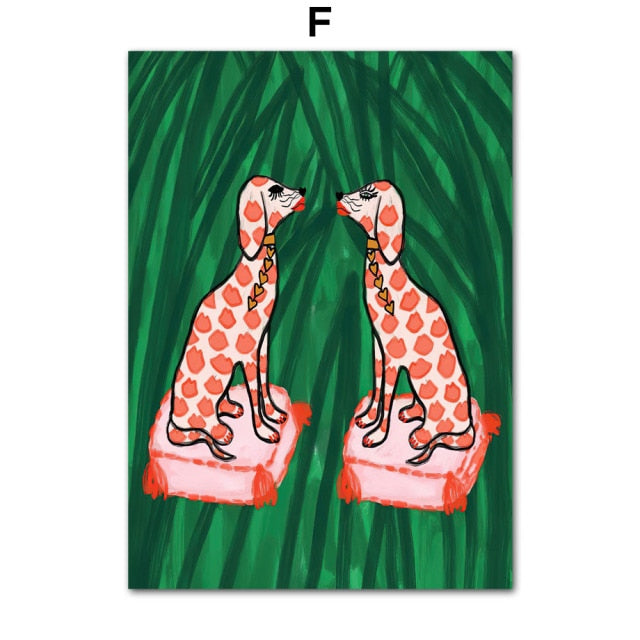 Colorful Tropical Abstract Leopard Woman Dog Vase Wall Art Canvas Painting Posters And Prints Wall Pictures For Bedroom Decor