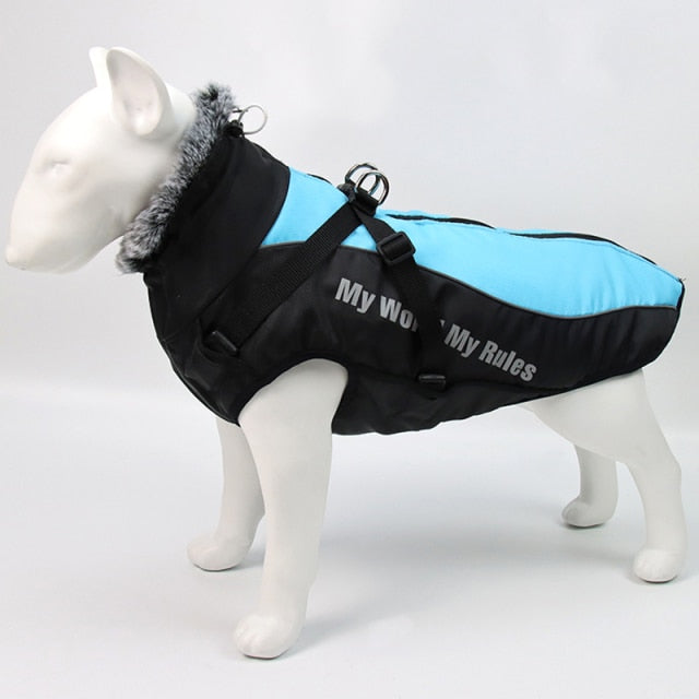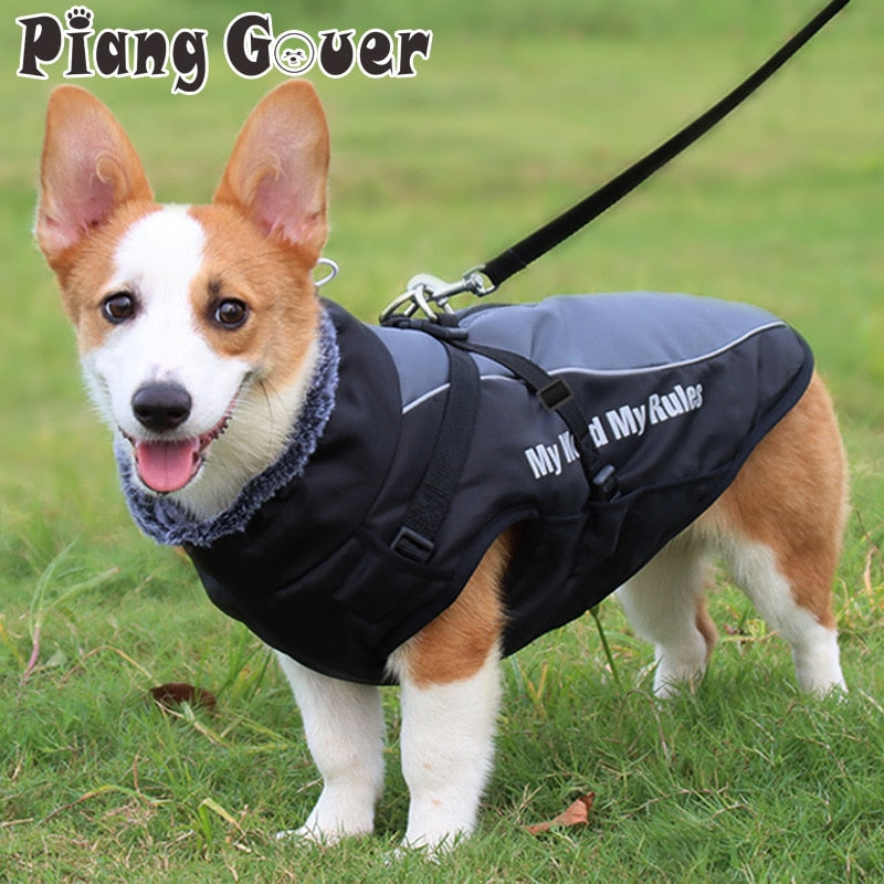 Not only does this vest keep your pet warm, but it also serves as a practical harness, ensuring their safety while out on walks. The pet clothes style is not only fashionable but also ensures that your dog can move freely and comfortably.