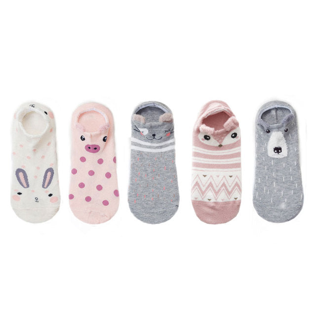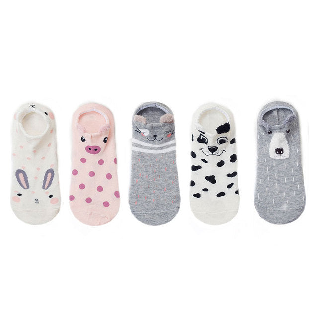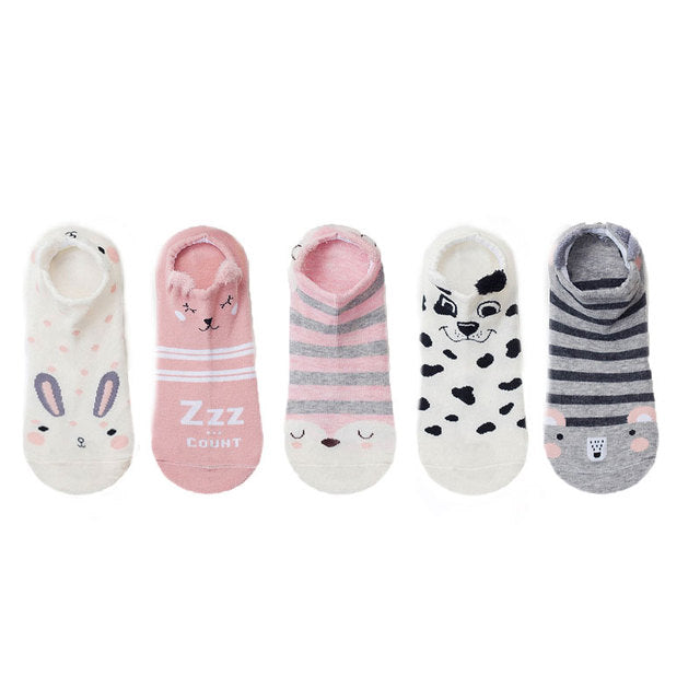 5 pairs Cute Animal Cotton Socks Female Kawaii Cat With Dog Summer Short Sock Slippers Women Casual Soft Funny Boat Socks