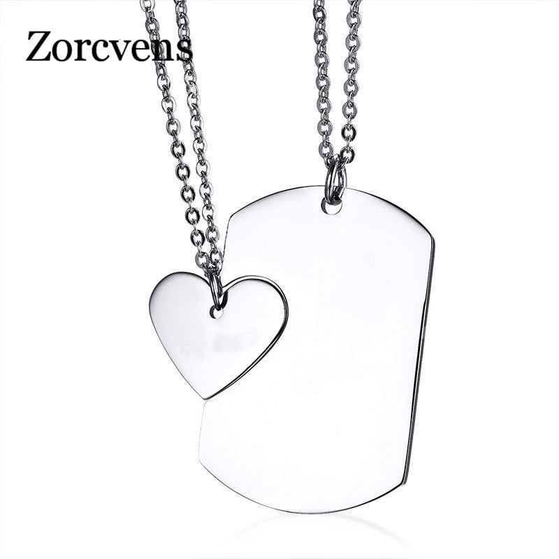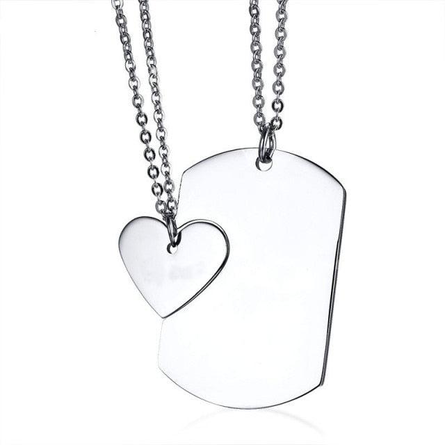 Couple Necklace ID Dog Tag Heart Pendant High Polished Stainless Steel Trendy Women Men Jewelry