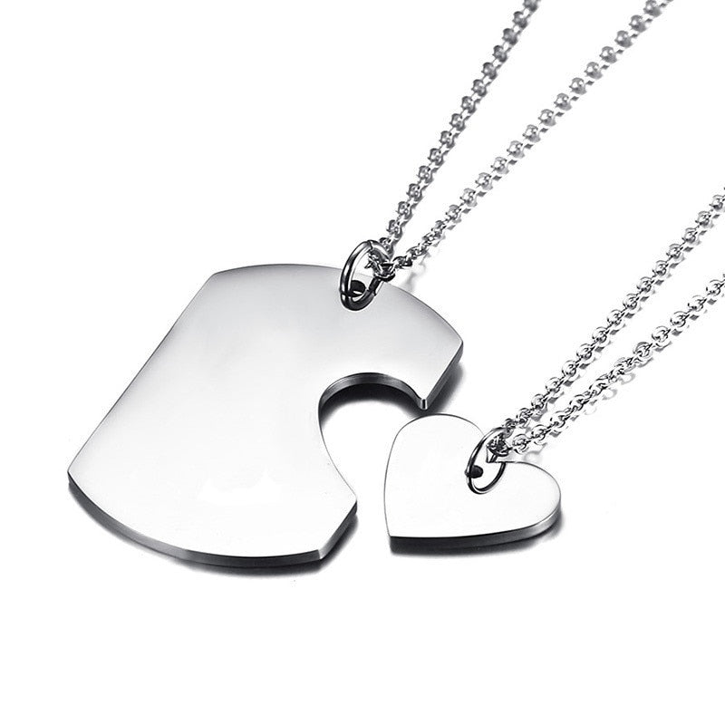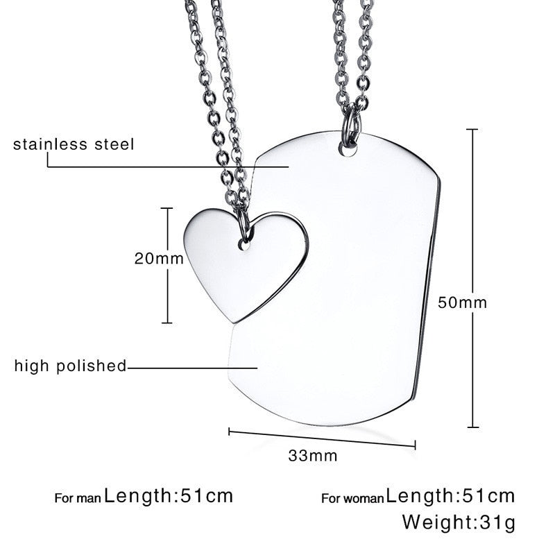 In summary, our Couple Necklace ID Dog Tag Heart Pendant is a trendy and fashionable piece of jewelry made of high-polished stainless steel. Its unique design, durability, and compatibility make it a must-have accessory for both men and women. Upgrade your style and show your love with this versatile and beautiful necklace.