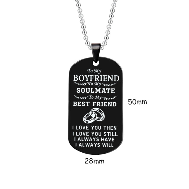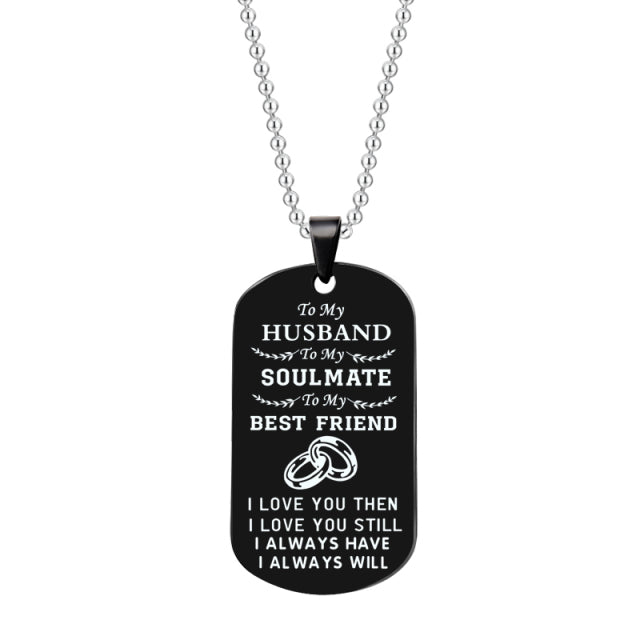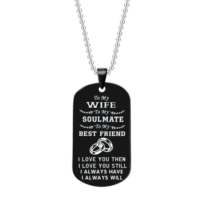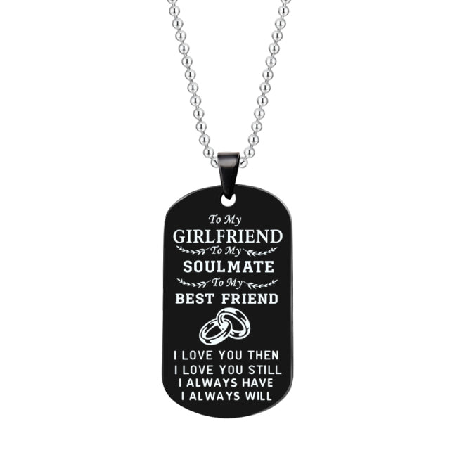 Stainless Steel Couple Pendant Necklace Jewelry My Soulmate I Love You Dog Tag Necklaces For Boyfriend Girlfriend Husband Wife