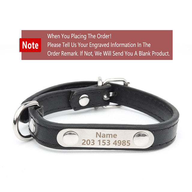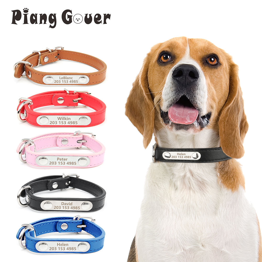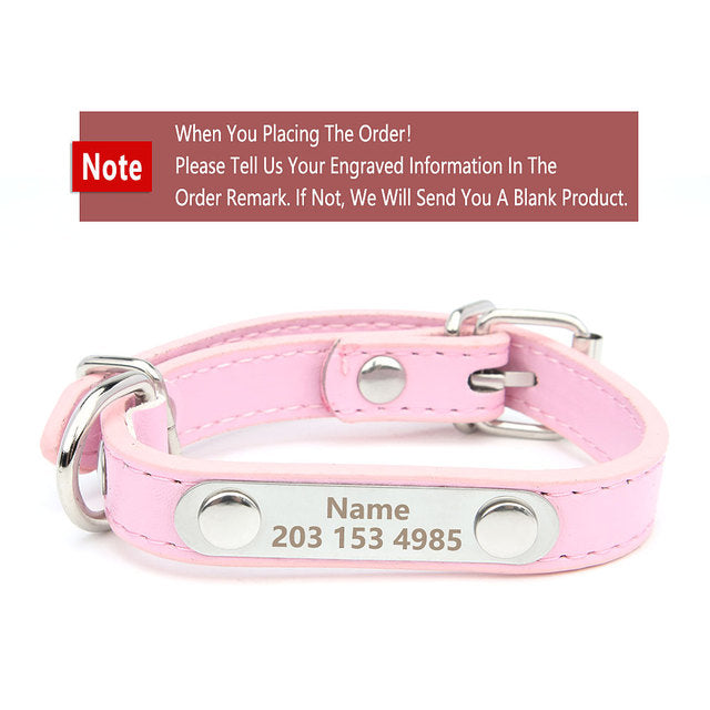 Custom Pet Collar Anti-lost PU Leather Personalized Small Medium Dog Collar For Cat Puppy Carving Name