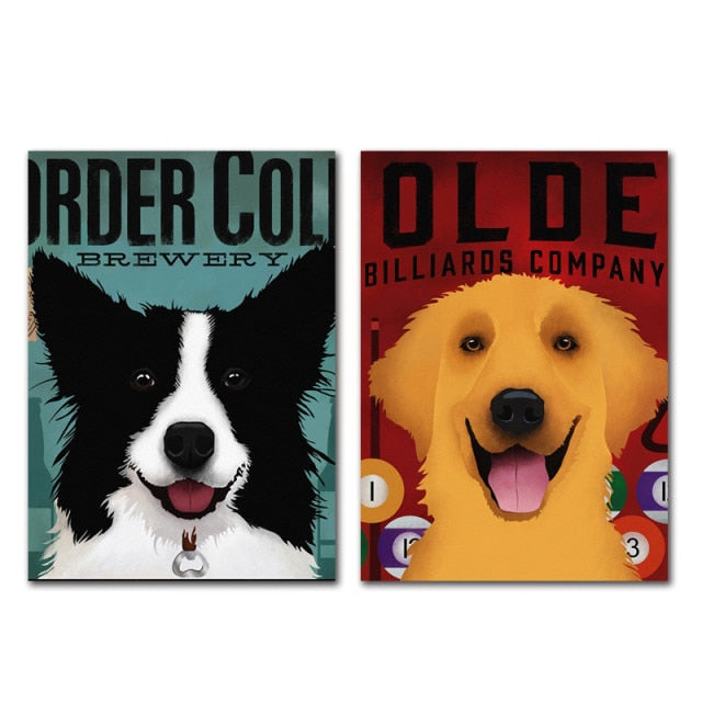 Cute Abstract Border Collie Golden Retriever Dog Wall Painting Animal Canvas Print Poster Modern Home Decor Frameless Picture
