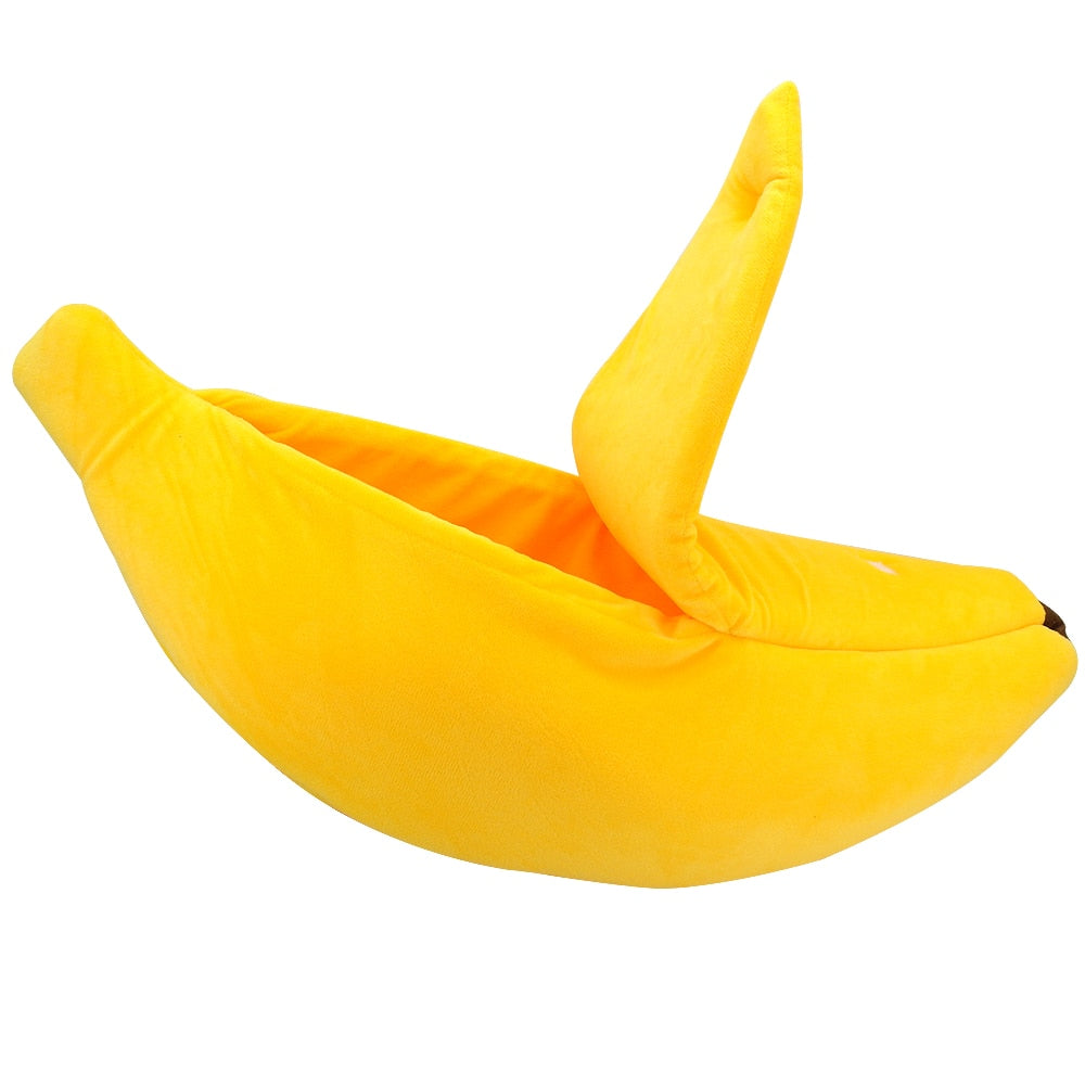In summary, the Cute Banana Cat Bed House is a warm, soft, and portable bed made of 100% cotton. Its yellow color and unique banana design make it a fun and stylish addition to any home. Suitable for small to medium cats and puppies, it provides the perfect spot for your furry friend to rest and relax, whether it's indoors or outdoors. Get this adorable cat bed today and give your pet the ultimate comfort they deserve!
