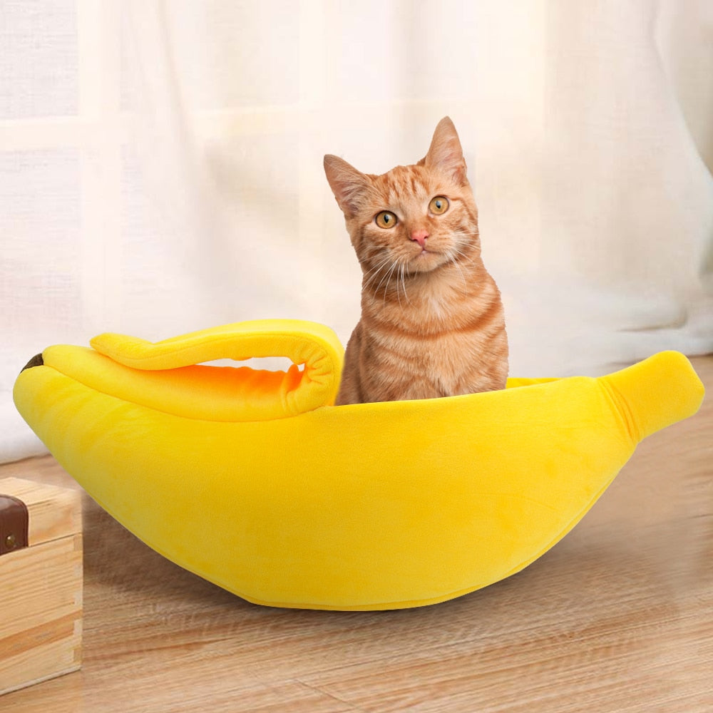 Cute Banana Cat Bed House Warm Pet Puppy Banana Cushion Kennel Portable Pet Mat Beds For Cats Kitten Soft Cama Gato Pet Supplies