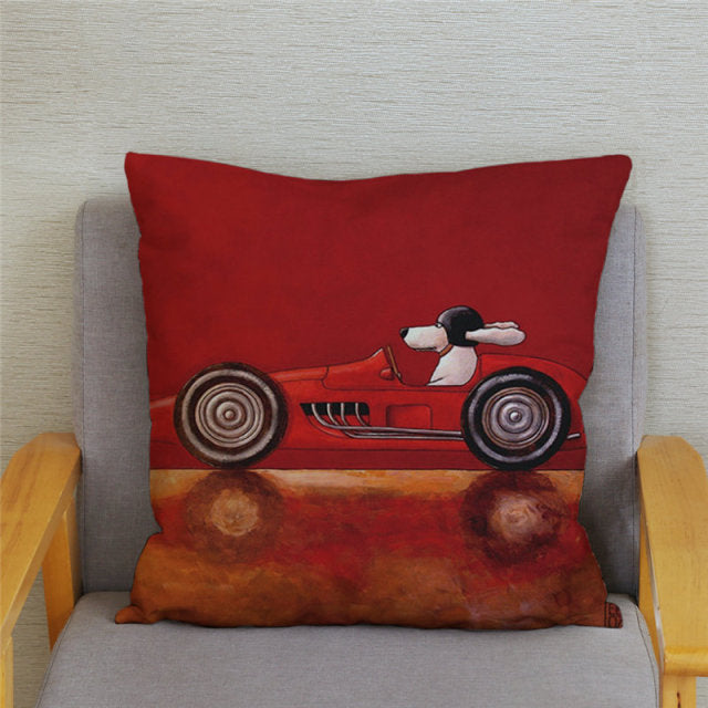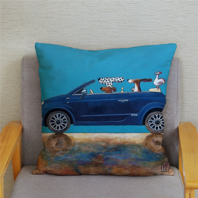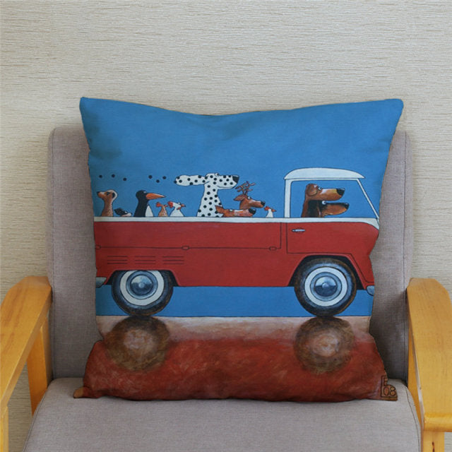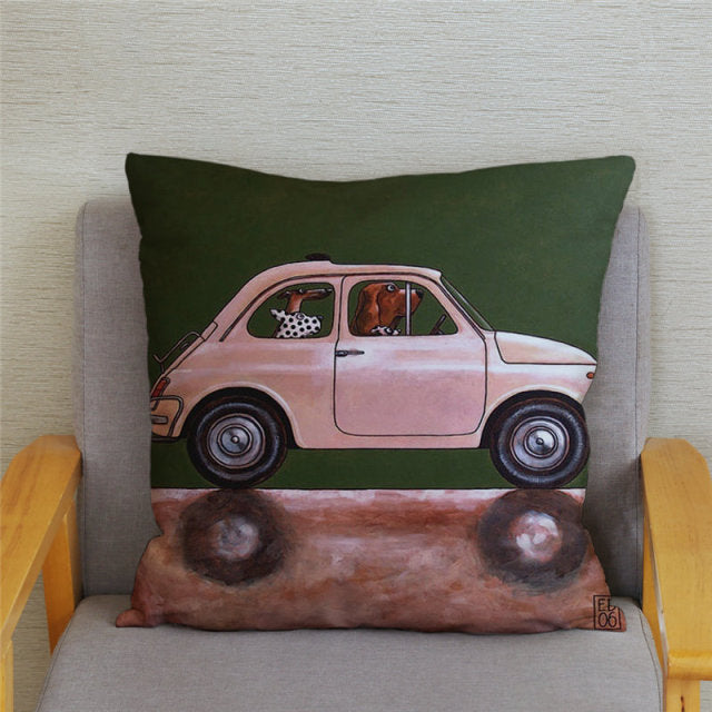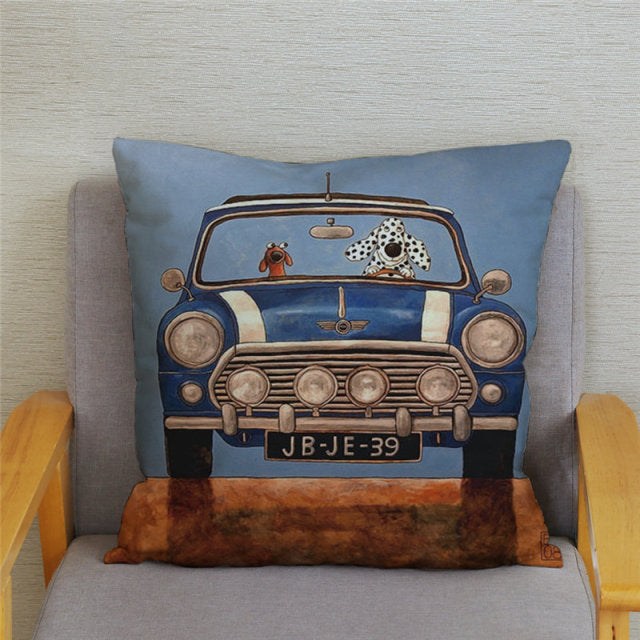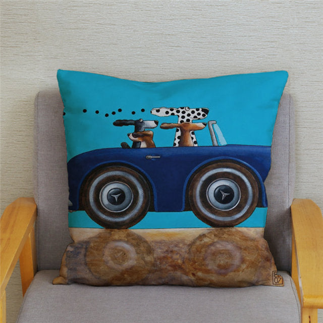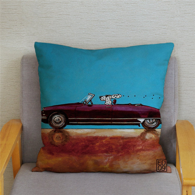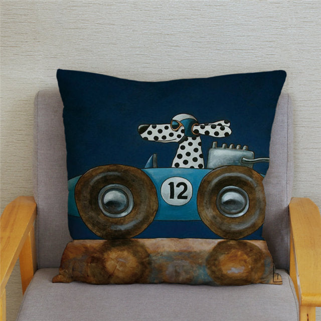 Cute Cartoon Driving Dalmatian Pillow Case Plush Decor 45*45cm Animal Dog Cushion Cover for Sofa Home Print Throw Pillowcase