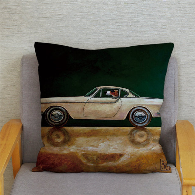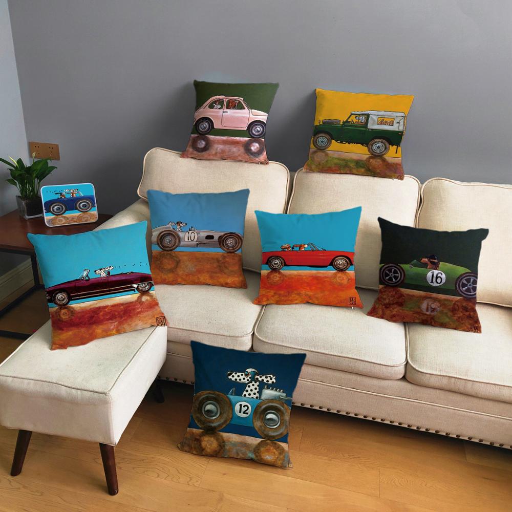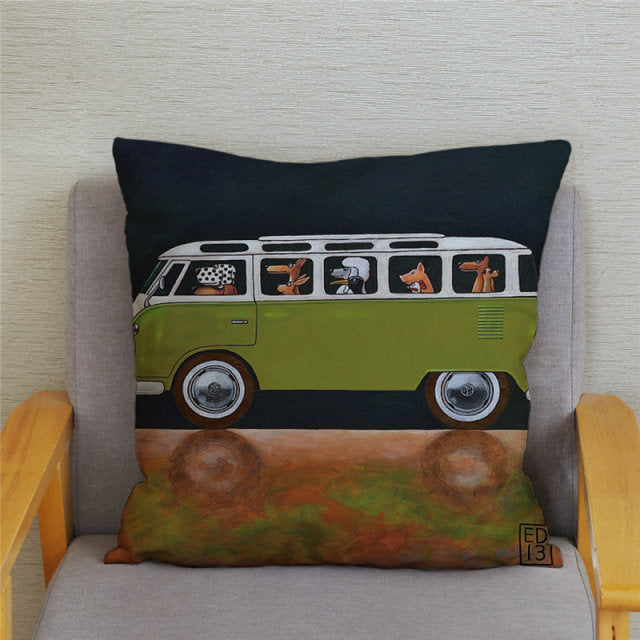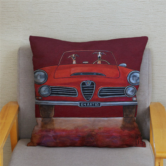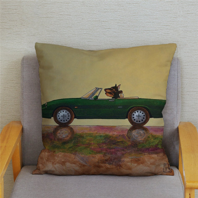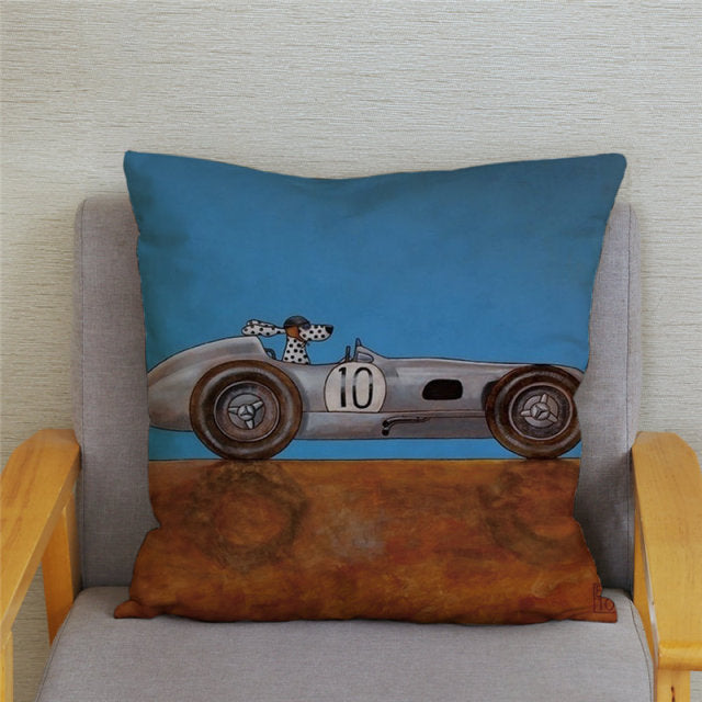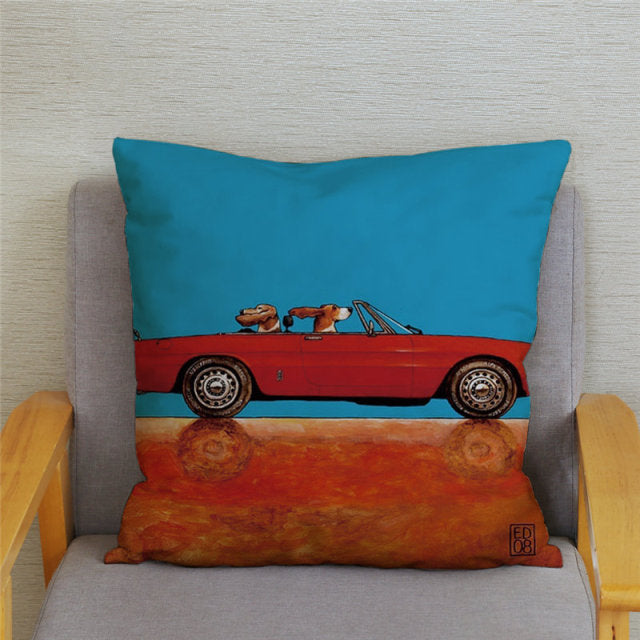 Cute Cartoon Driving Dalmatian Pillow Case Plush Decor 45*45cm Animal Dog Cushion Cover for Sofa Home Print Throw Pillowcase