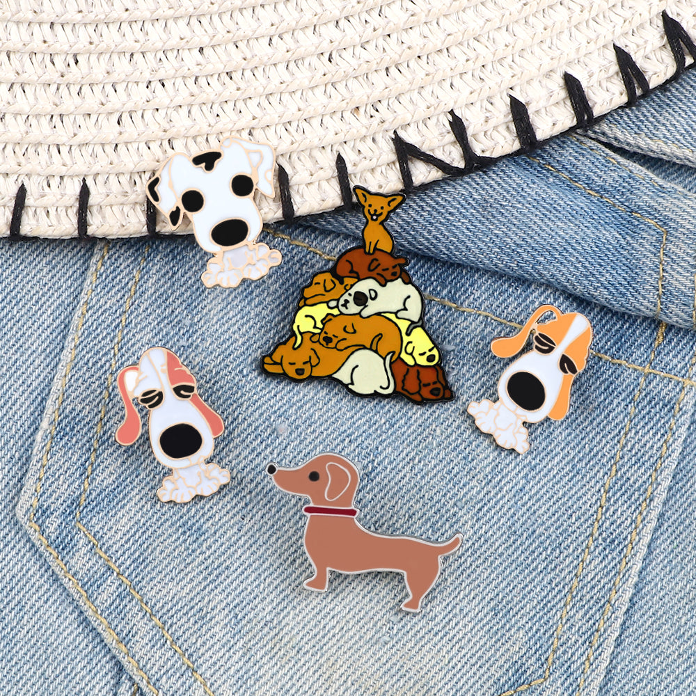Cute Dog Enamel Pins Sleeping Pet Puppy A group of Cats Dog Lapel Brooches Animals Lover Cartoon Jewelry Badge Gifts For Kids