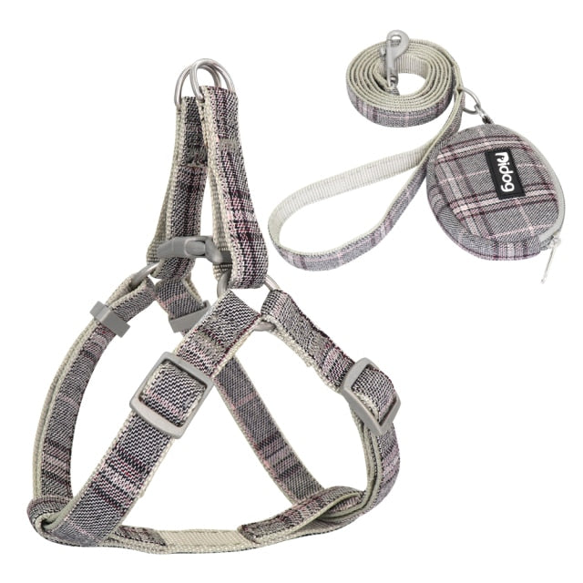 The set includes a matching leash, making it a convenient and complete package for your pet's walking needs. The leash is of the same high-quality nylon material and complements the harness perfectly.
