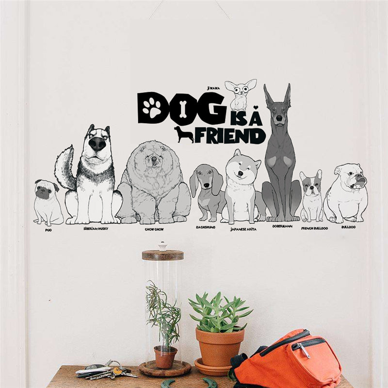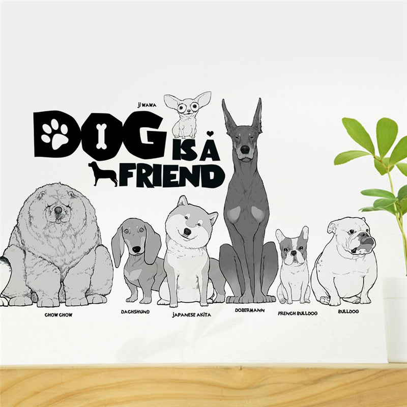Cute Dog Wall Stickers For Kids Room Decoration Diy Cartoon Pet Puppy Animal Mural Art PVC Home Decal Children's Gift